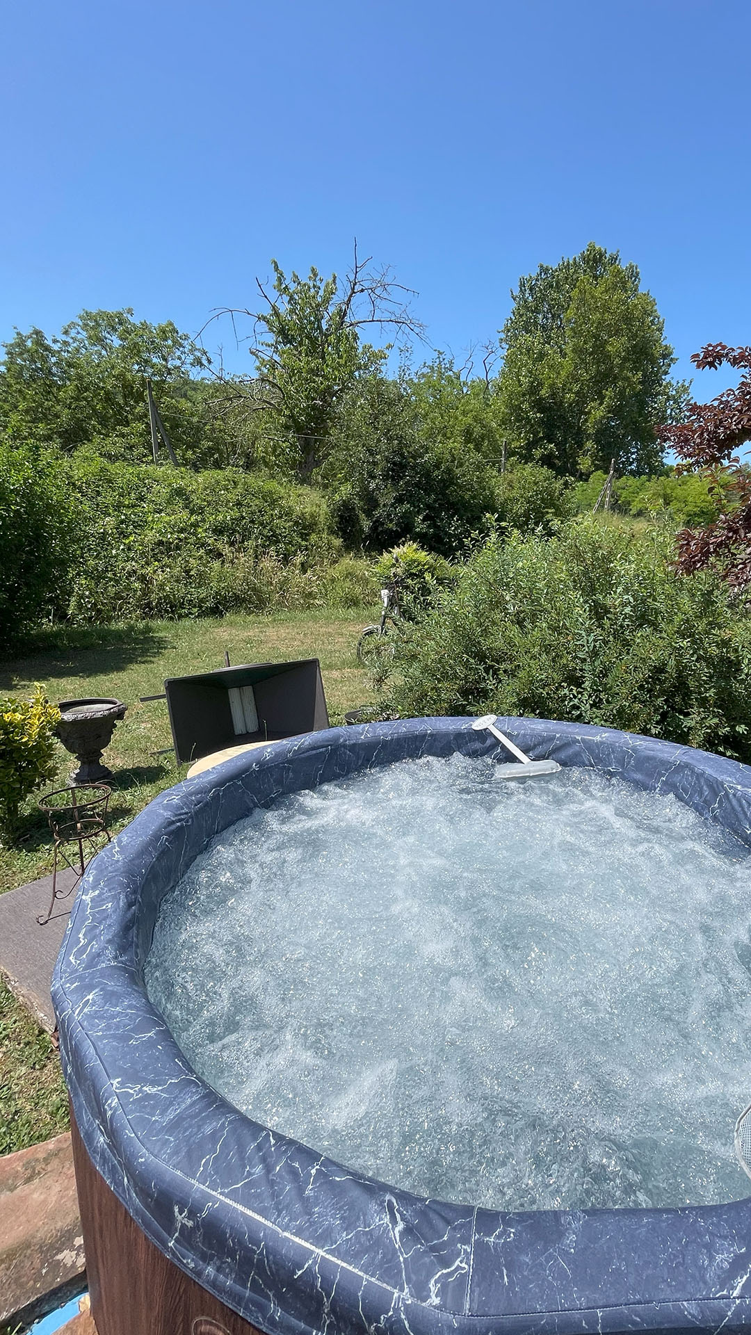 Ritagliati un momento di puro benessere nella nostra piscina con idromassaggio, immersa nel giardino del B&B1416. Circondata dal verde e dal silenzio della campagna toscana, è il luogo ideale per rigenerare corpo e mente dopo una giornata di escursioni, arte o semplicemente per godere della pace della natura.